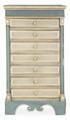 Høj Louis XVI kommode af bemalet træ. 18. årh.s slutning. H. 93. B. 53. D. 42.