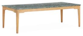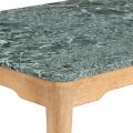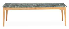 Stort sofabord af eg. Top med grøn marmorplade. H. 52. L. 162. B. 81.