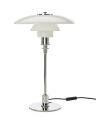 “PH-3/2”. Bordlampe med stel af forkromet metal. Skærme af flerlags opalglas. Udført hos Louis Poulsen.