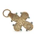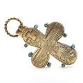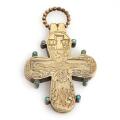 Kors af 14 kt. guld prydet med cabochonslebne turkiser. Vægt ca. 11 g. L. 4,6 cm. 19. årh.s slutning.