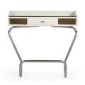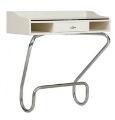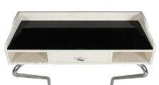 Funkis sminkebord af hvidmalet træ, plade af sort glas, stel af forkromet stålrør. 1930–40'erne. H. 79. B. 80. D. 32.