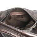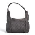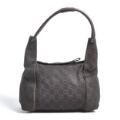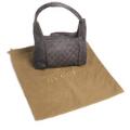 A bag of dark brown and black monogram canvas with dark brown leather trimmings, dark hardware, short handle, one zipped compartment with one interior zipped pocket and dark brown fabric lining. H. 19 x W. 26 x D. 10.5 cm.