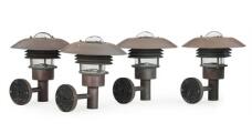 Fire udendørs væglamper af patineret kobber med inderskærm af glas. H. 29. D. 29. Diam 28. (4)
