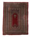 Lahore bedetæppe. Prydet med niche båret af søjler, hvorimellem hængende olielampe. Pakistan. 20. årh. 178×143.