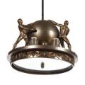 Art deco lysekrone af bruneret messing, underskærm af spejlglas. 1930'erne. H. 70. Diam. 35.
