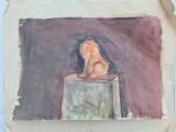 Figurkomposition. Akvarel på papir monteret på pap. Med dedikation "Til Christian (Schade) fra Ole Finding 1966. 21×29,5. Uindrammet.
