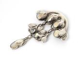 Stor månestensbroche af sølv i form af bladværk prydet med cabochonslebne månesten. Vægt ca. 28 g. Ca. 10×7 cm.
