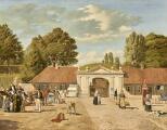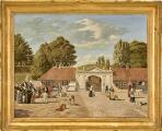 Philip Fischer has painted a lively scene from Østerport a few years before the gate was removed. Copenhagen's ramparts as a defensive structure were dismantled in the 1850s, and the military guard posts at all gates ceased in 1856. In 1857, Østerport was demolished.