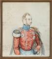 “Der Herzog von Holstein-Glücksburg”. Portrait of Duke Carl of Schleswig-Holstein-Sonderburg-Glücksburg (1813–1878), head of the family 1831–1878. Signed and dated Fr. Helmsdorf ad nat. pinx. Rendsburg 1837. Pencil and watercolor on paper. Visible size 25×21 cm.