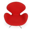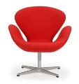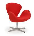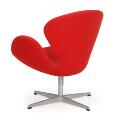 “Svanen”. Loungestol betrukket med rødt uld, monteret på drejebar satinpoleret stålrør med stjernefod af aluminium. Model 3320. Designet 1958. Udført og mærket hos Fritz Hansen, 2007.