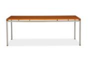 “Professorbord”. Fritstående skrivebord med stel af grålakeret vinkeljern. Top af oregonpine. Udført ca. 1950'erne hos Rud. Rasmussens snedkerier. H. 68,5. L. 185. B. 85.