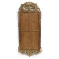 A Swedish Rococo mirror in a frame of gilded carved wood with papier-mâché decoration in the shape of acanthus leaves, rocailles and volutes, later mirror glass, the frame with mirror border decorated with gold foliage. Stockholm, mid-18th century. H. 164 cm. W. 70 cm.