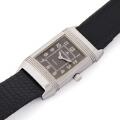Reverso af stål, ref. 261.8.86. Mekanisk værk med manuelt optræk. 1990’erne. Sort firbenrem med c-spænde af stål. Ø 33×19 mm.