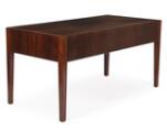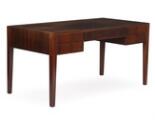 A freestanding rosewood desk, front with five drawers. 1960s. H. 72. L. 148. W. 72 cm.