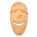 Flad maske af sortsværtet træ med udskårne tænder. 1930–40'erne. H. 29 cm.
