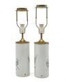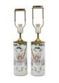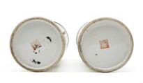 Et par kinesiske vaser af porcelæn, cylinderformede, dekorerede i emaljefarver med forsaming af vismænd, spejlvendte. Mærkede Hu Kun Ji. Sen Qing ca. 1900. Monterede til lamper. H. ekskl. montering 28 cm. (2)