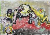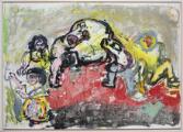 “Verdensbillede fra Finland II”. Sign. på bagsiden Niels Reumert, Sveaborg, 87. Olie på lærred. 137×196.