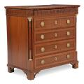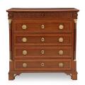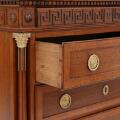 Stor dansk Louis XVI kommode af mahogni, udskåret med 'a la grec' bort og fritstående kannelerede søjler monteret med beslag af forgyldt bronze. 18. årh.slutning. H. 100. B. 97. D. 58.