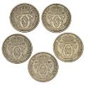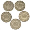 1/2 kr 1924–1926 HCN og 1939–1940 N, H 22A-B, i alt 5 stk. - komplet sæt
