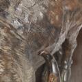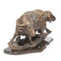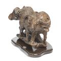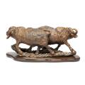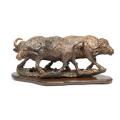 Wood figure carving of two buffalos. Mounted on stand. 20th century. L. 60 cm. H. 29 cm.