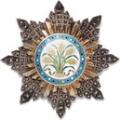China, Order of the Golden Grain (1912–1929), 2nd class breast star, Year 8 (1919), silver gilt with diamond cut rays, central medallion silver gilt and enamel heads of grain. Reverse with vertical pin and Chinese stamped inscriptions, Barac 359, 88 mm - highly attractive example