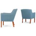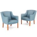 A pair of easy chairs with legs of beech. Seat, sides and back upholstered with blue wool. Manufactured for FDB. (2)