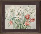 Red tulips and poet's daffodils. Signed Olga. Watercolour on paper. Sheet size 26×33 cm.