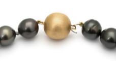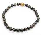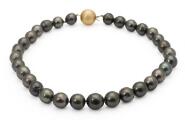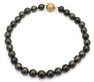 Tahiti perlehalskæde prydet med talrige Tahiti kulturperler og kuglelås af 18 kt. satineret guld. Lås diam. 16 mm. Perlediam. ca. 12–15 mm. L. 46 cm.