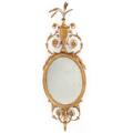 An oval Louis XVI giltwood mirror, adorned with openwork ornaments and foliage. C. 1780. H. 118 cm. W. 41 cm.