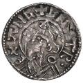 England, Cnut the Great, 1016–1035, London, Penny, Pointed Helmet type, circa 1023–1029, Moneyer Wulfric, 0.94 g, North 787, S 1158 - peck-marks