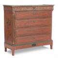 A Danish painted and carved chest of drawers. 19th cnetury. H. 128 cm. W. 136 cm. D. 54 cm.
