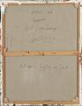 "U.T. (efterhængt). Sign. på bagsiden Carstensen 060691 (1991–34). Akryl, tempera og spray maling på lærred. 114×90. Uindrammet.