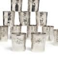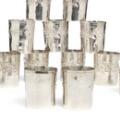 A set of 14 Italian sterling silver cups, each decorated with a blooming rose branch in low relief. Brandimarte in Florence, 1970s. Weight 1,252 g. H. 8 cm. (14)