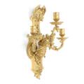 To store (forskellige) franske væglampetter af forgyldt bronze. 19. årh.s slutning. Den ene monteret til el. H. 62 cm og 46 cm. (2).