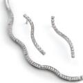 Diamantsmykkesæt af 18 kt. hvidguld bestående af halskæde og et par ørestikker hver prydet med talrige brillantslebne diamanter. Farve: Wesselton-Crystal (H-J). Klarhed: VS-SI. L. ca. 43 og 3 cm. England, ca. 2006. (3)