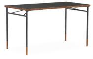 Rectangular table with steel base. Nutwood table edge and “shoes”. Manufactured and marked by Onecollection, House of Finn Juhl. H. 72 cm. L. 130 cm. W. 65 cm.