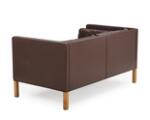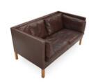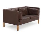 Two-seater sofa with oak legs, seat, sides and loose cushions with brown leather. Model 2442. Manufactured by Fredericia Stolefabrik. L. 150 cm.
