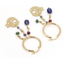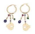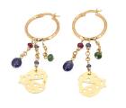 A pair of sapphire ear studs each set with cabochon sapphires, emeralds a.o. and a pendant in the shape of lady bugs, mounted in 18k gold. Weight in total app. 4.5 g. L. 5.3 cm. (2)