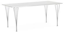 Dining table with legs of chromed steel. Top of white laminate and aluminium edge. Model B 640. Manufactured and marked 1993 by Fritz Hansen. H. 73 cm. L. 180 cm. W. 80 cm.