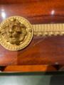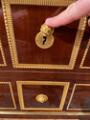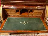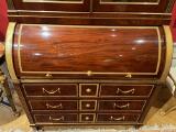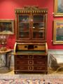 Russisk chatol af mahogni med beslag af forgyldt bronze og messing, vitrine overdel med bennembrudt gallerikant, cylinerklap bag hvilken skuffer og rum, udtrækkelig skriveplade med grønt gyldentrykt læder. Louis XVI form, ca. 1820 med senere montering og tilføjelser. H. 241. B. 116. D. 59.
