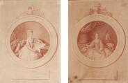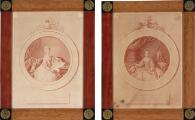 A pair of portraits of Queen Juliane Marie of Denmark and Queen Charlotte Amalie of Denmark. 1779 and 1780. Print mounted on paper. Sheet size 34.5×24.5 cm. Frames ca. 1800. (2).