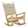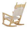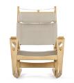 “Nøglehullet”. Gyngestol af bøg. Betrukket med lys kanvas. Udført hos Getama.