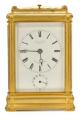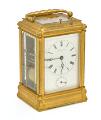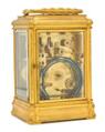 Le Roy & Fils rejseur i kasse af forgyldt messing og glas, skive af hvid emlaje, værk med repetion og alarm. Skiven mærket 'Leroy & Fils, Palais Royal 13–15 Paris' samt '211 Regent Street, London'. Ca. 1870–90. H. 13. B. 9. D. 7,5.