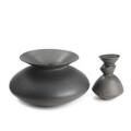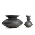 To vaser af stentøj dekoreret med mørkebrun glasur. Signeret hhv. JM og M. H. 26–27 cm. (2)