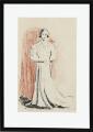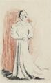 Woman in white dress. Signed v.b-p-28. Probably made during his time at the National Academy of Fine Arts in Oslo (1927–29). Coloured crayon on paper. Visible size 33×20 cm.