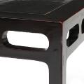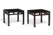A pair of chinese dark polished hardwood side tables, carved with open work ornamentation. 20th century. H. 52. W. 60. L. 60 cm. (2)