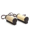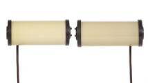 Pair of bakelite wall lamps with cylindrical lampshades of champagne-colored opal glass. Made and marked by Lyfa. Circa 1940. L. 19.5 cm. (2)