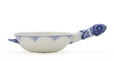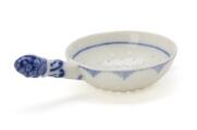 “Blue Fluted” porcelain tea strainer decorated in blue. Royal Copenhagen. L. 12.5 cm.