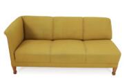 Chaiselong med tre ben af palisander og et ben af bøg, betrukket med grønligt uld. 1940–50'erne. L. 175 cm.