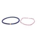 Clasp of 14k gold. Diam 10.5 mm. Accompanied by two chains respectivly of lapis lazuli and freshwater pearls with Lynggaard ends. L. 42–45 cm. (2)